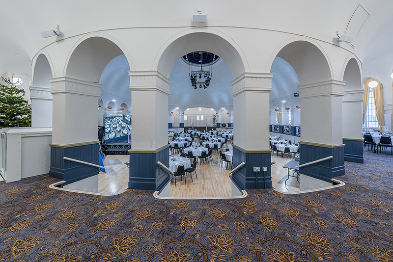 A woven Axminster carpet was created by Wilton Carpets at the Wiltshire based manufacturing based facilities. The Winter Gardens Pavilion is a stunning neo-Georgian building, first opening its doors in 1927. It was later taken over by Weston College to have a £15m renovation to become one of the largest venues of its kind in the area.