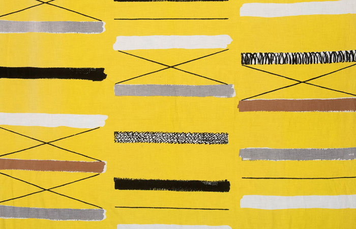 The history of Britain is intricately linked with the history of textiles and their vital role as an economic driver for the British economy. Nevermore so than following the Second World War. As the dark clouds of war lifted, domestically there was a desire for change, for colour, and for inspiration, and this change began in the home. The energy and innovation of British-based women textile designers were destined to revolutionise design worldwide for decades to come. Prior to, during and immediately following World War II, emigrés arrived in Britain bringing new ideas and perspectives that were to revolutionise 20th Century Modern British design. Influences from Vienna’s Wiener Werkstatte, Gropius’s Bauhaus and the bright colours of the West Indies joined with new Modernist thinking in Art Colleges across the country to ensure that in the post-war period ‘Textiles by Britain’ were set to have a global impact.