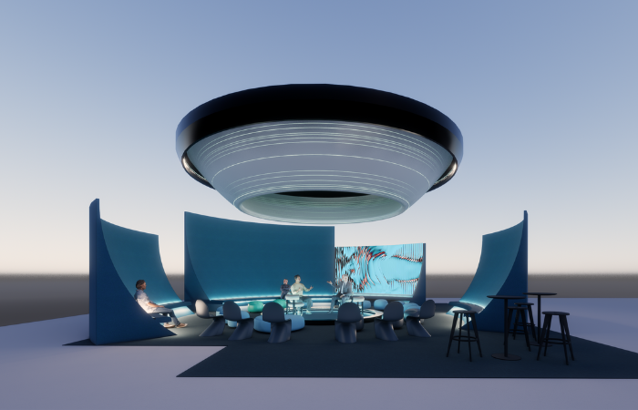 Inspired by this year’s theme “Connected Realities,” the stage design moves between physical and digital realms. Transporting visitors into a new dimension, cosmic colours fade into gentle gradients, forming a calm yet mysterious space. At the centre, a circular stage brings the focus back to people, suggesting that in our shifting worlds, human connection remains our true ground.