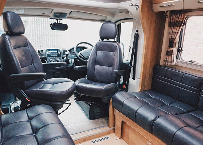See how Mustang leather in Graphite transformed the look of this motorhome in a reupholstery makeover by South West Upholstery.